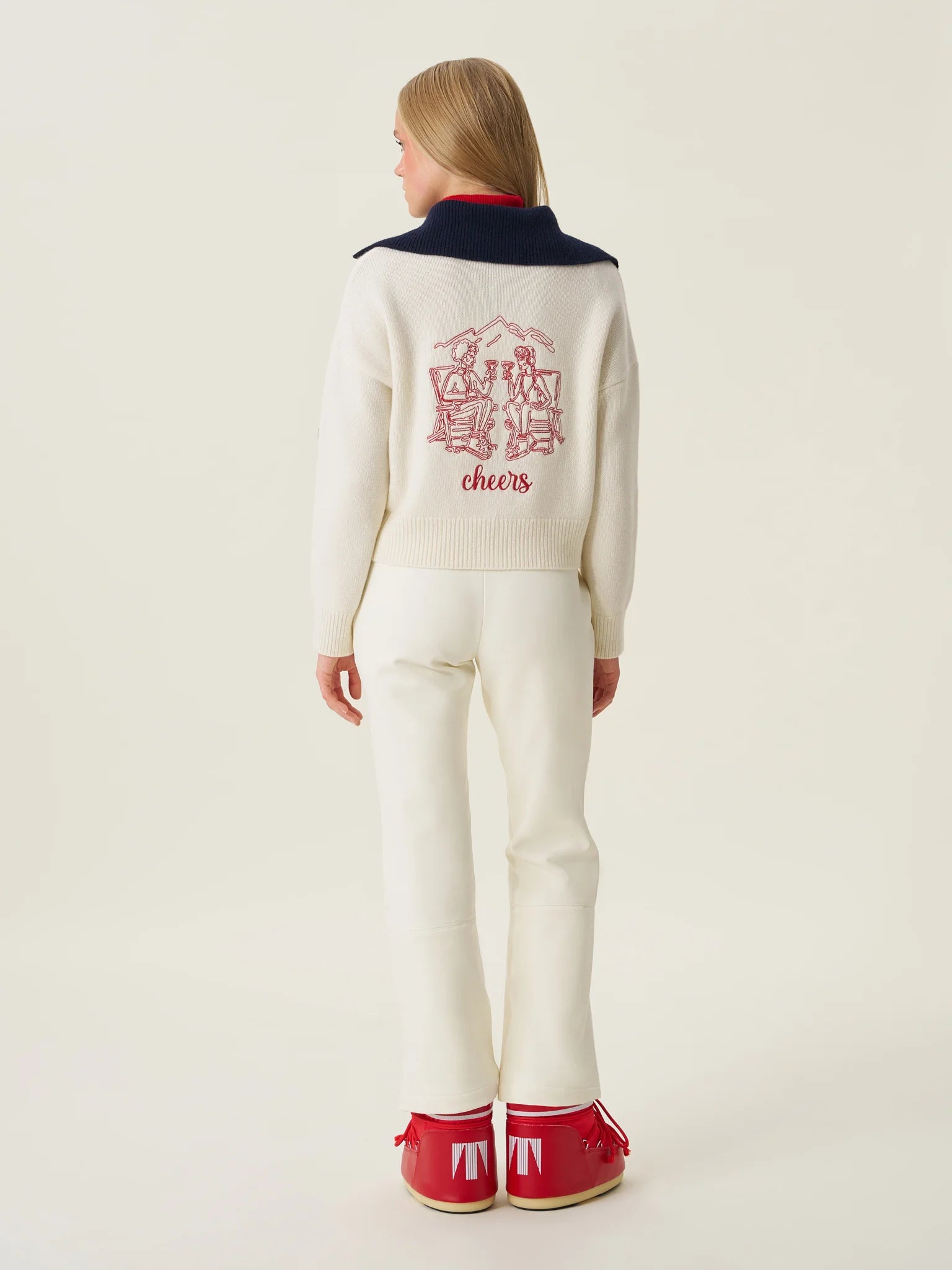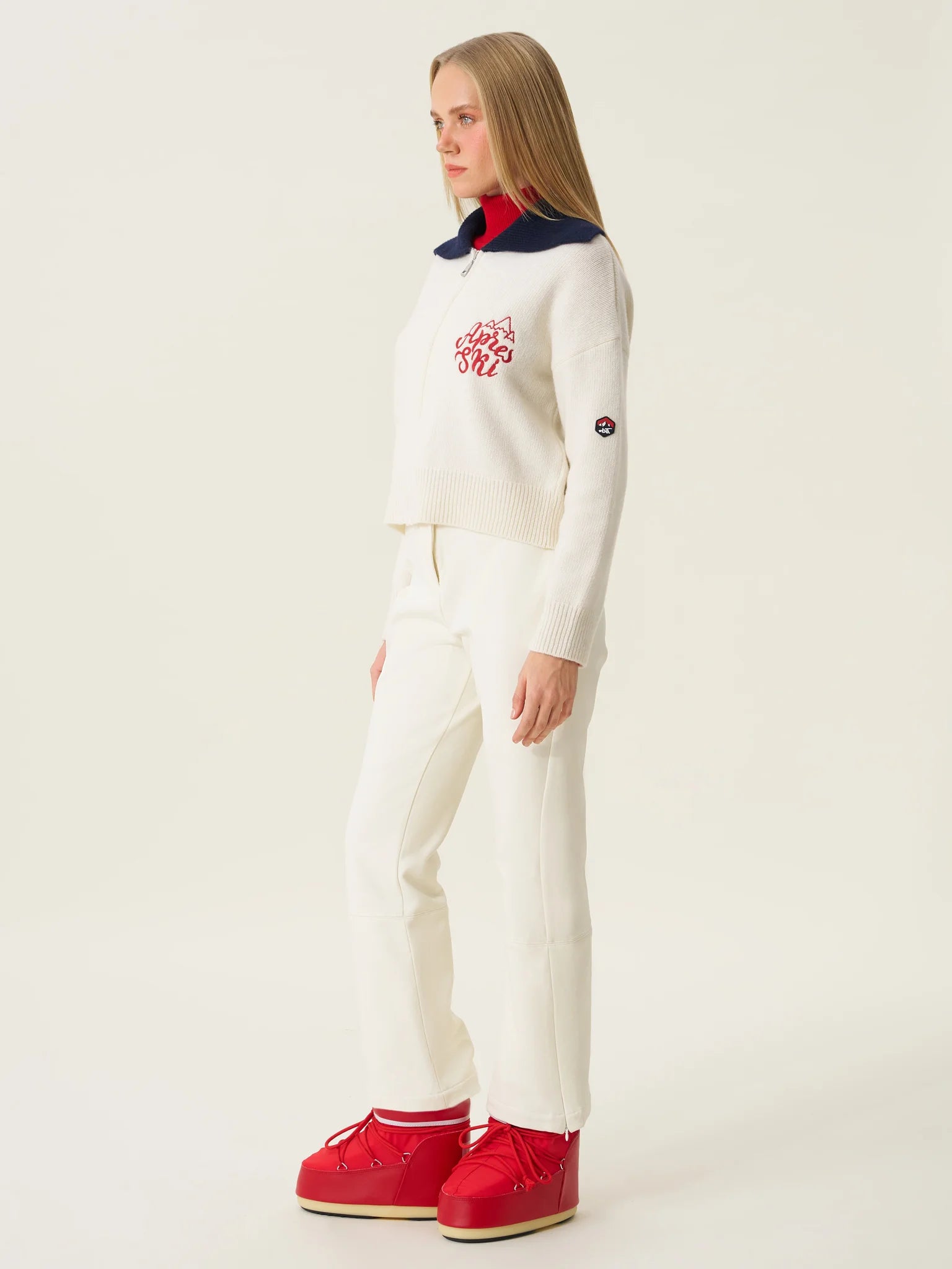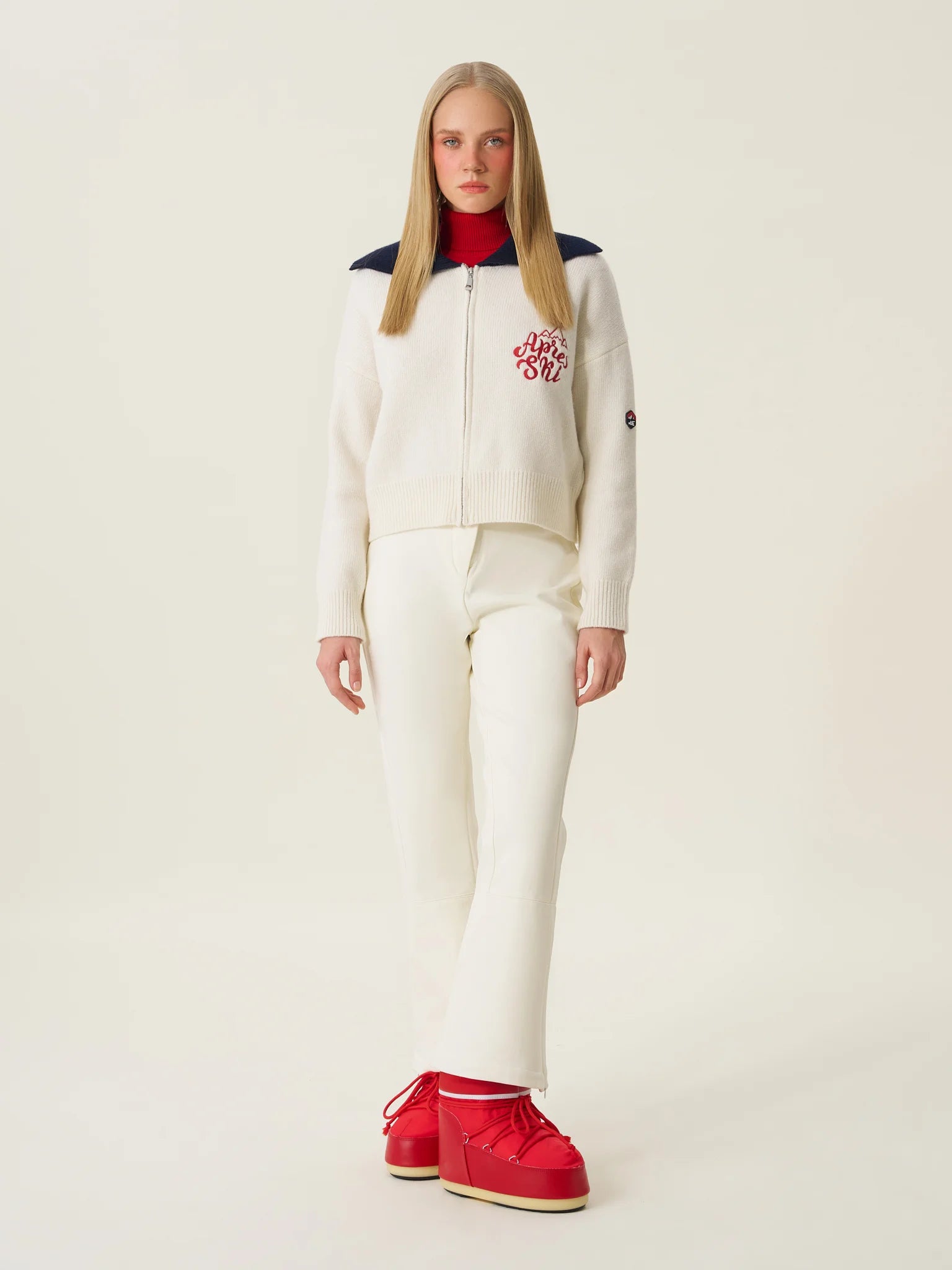Chalet 03: كارديغان نسائي تريكو بسحّاب بلون عاجي (إكرو)