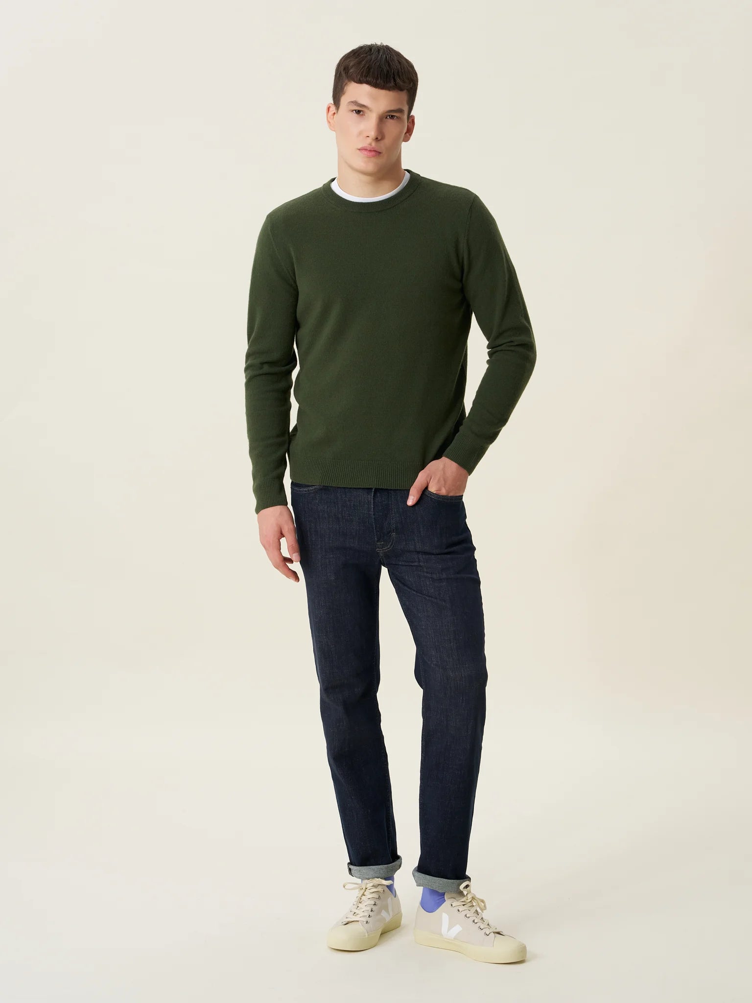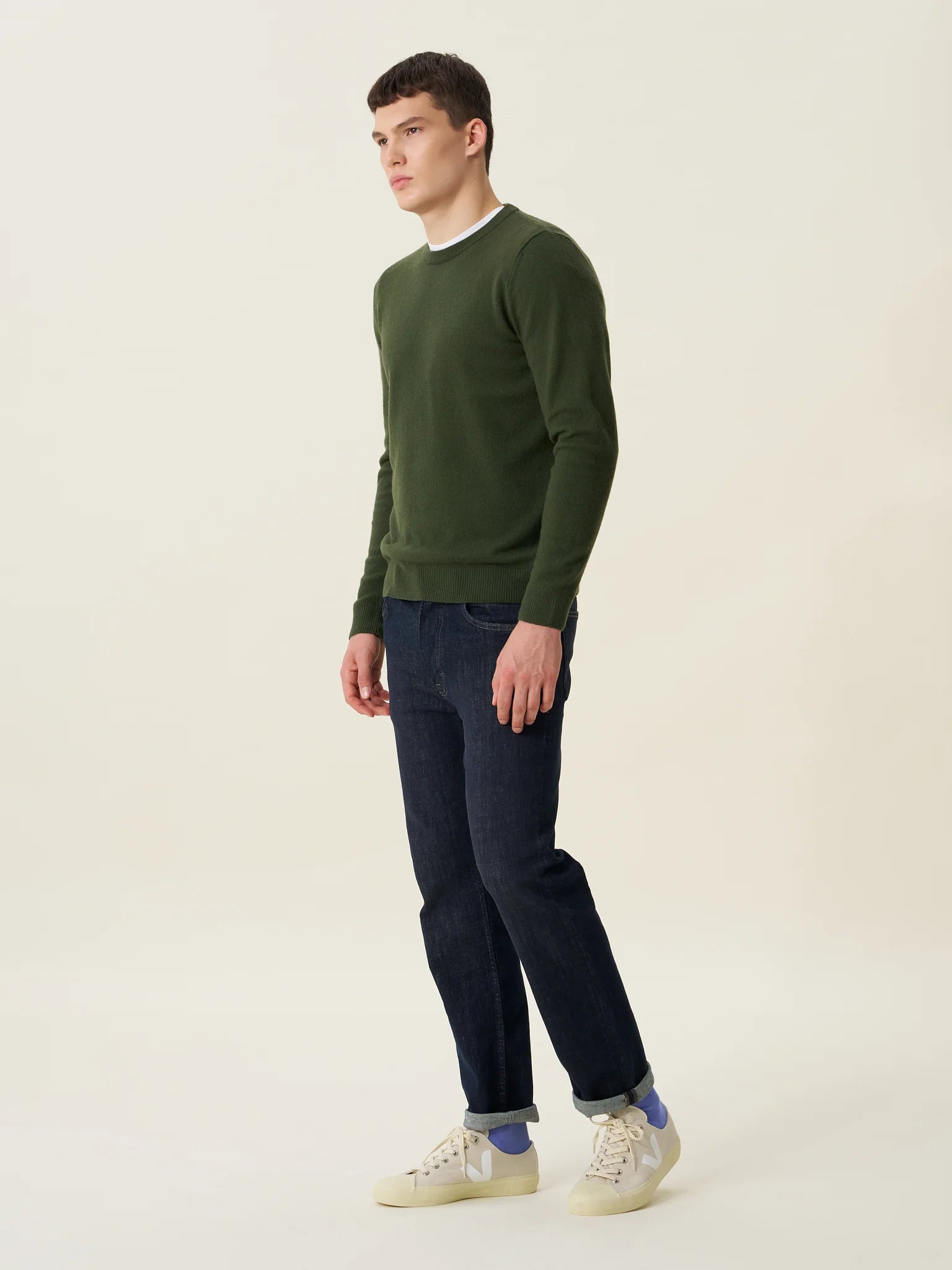 ESSENTIALS 01: Haki Erkek Bisiklet Yaka Kazak
