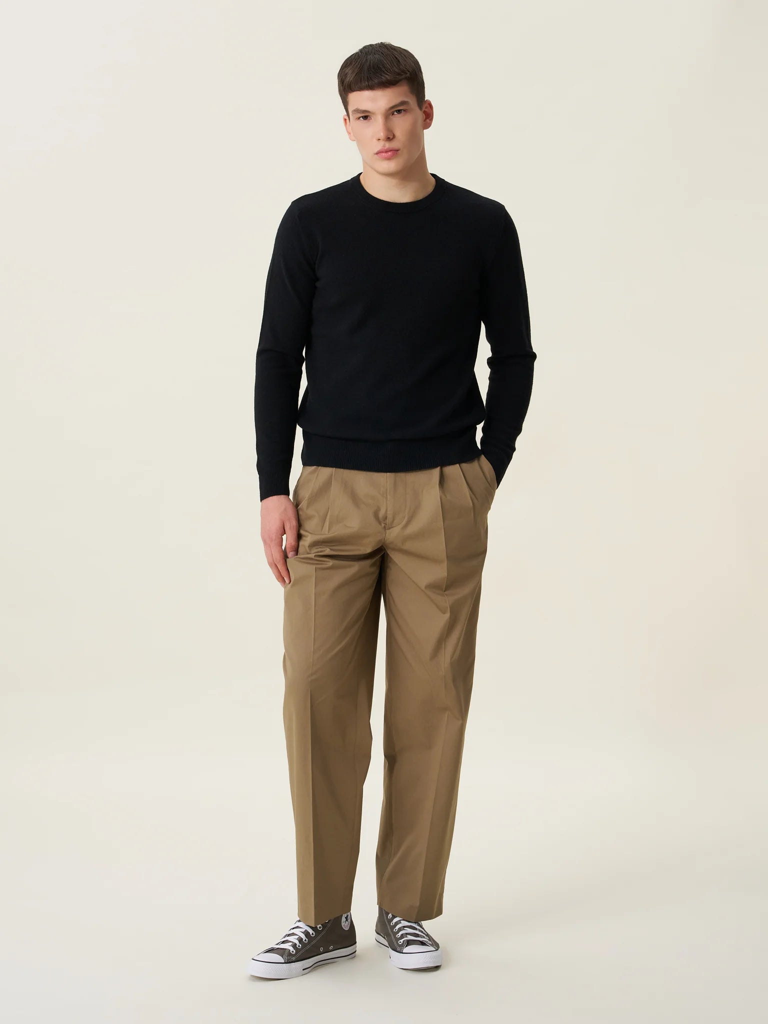 ESSENTIALS 01: Siyah Erkek Bisiklet Yaka Kazak