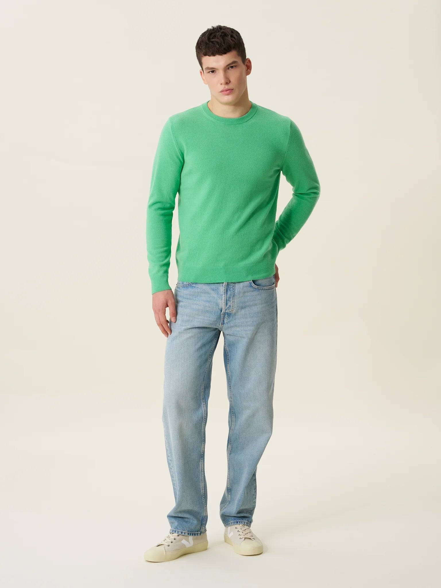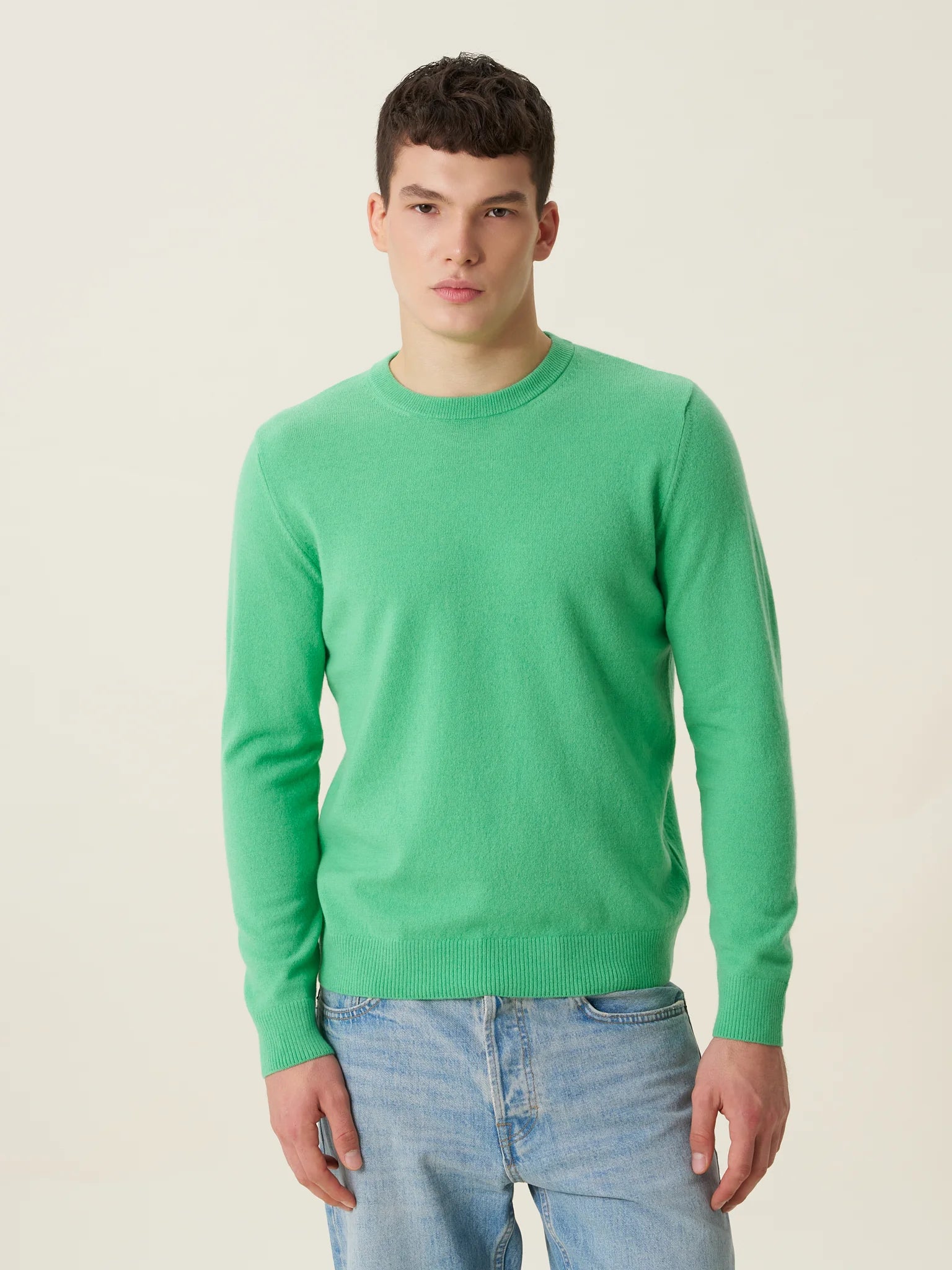 ESSENTIALS 01: Yeşil Erkek Bisiklet Yaka Kazak