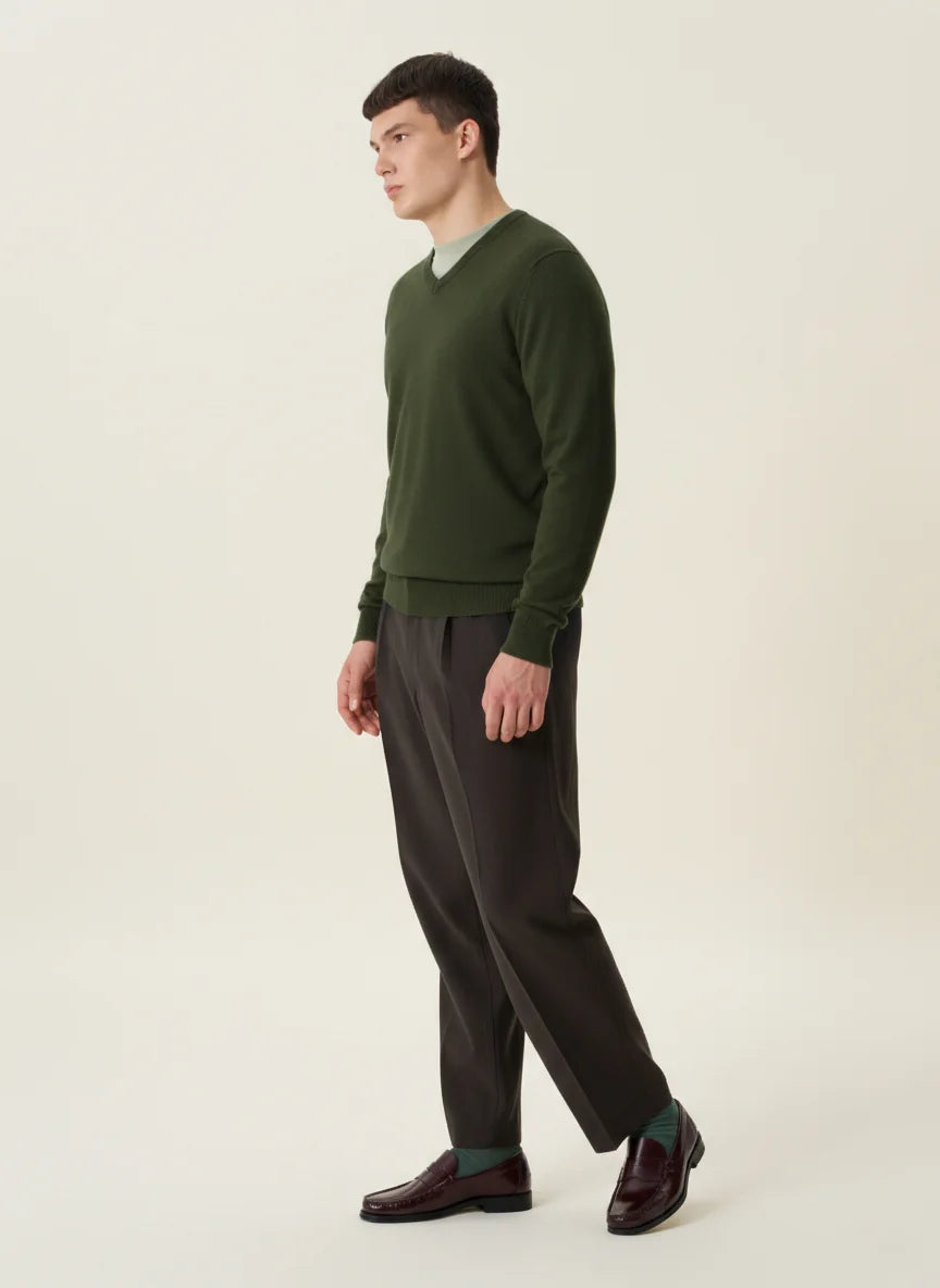 ESSENTIALS 02: Haki Erkek V Yaka Kazak
