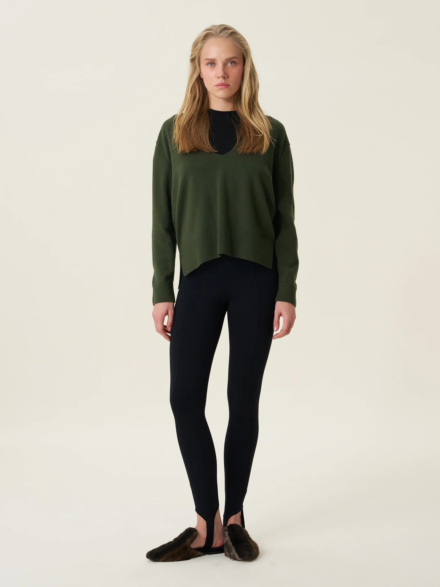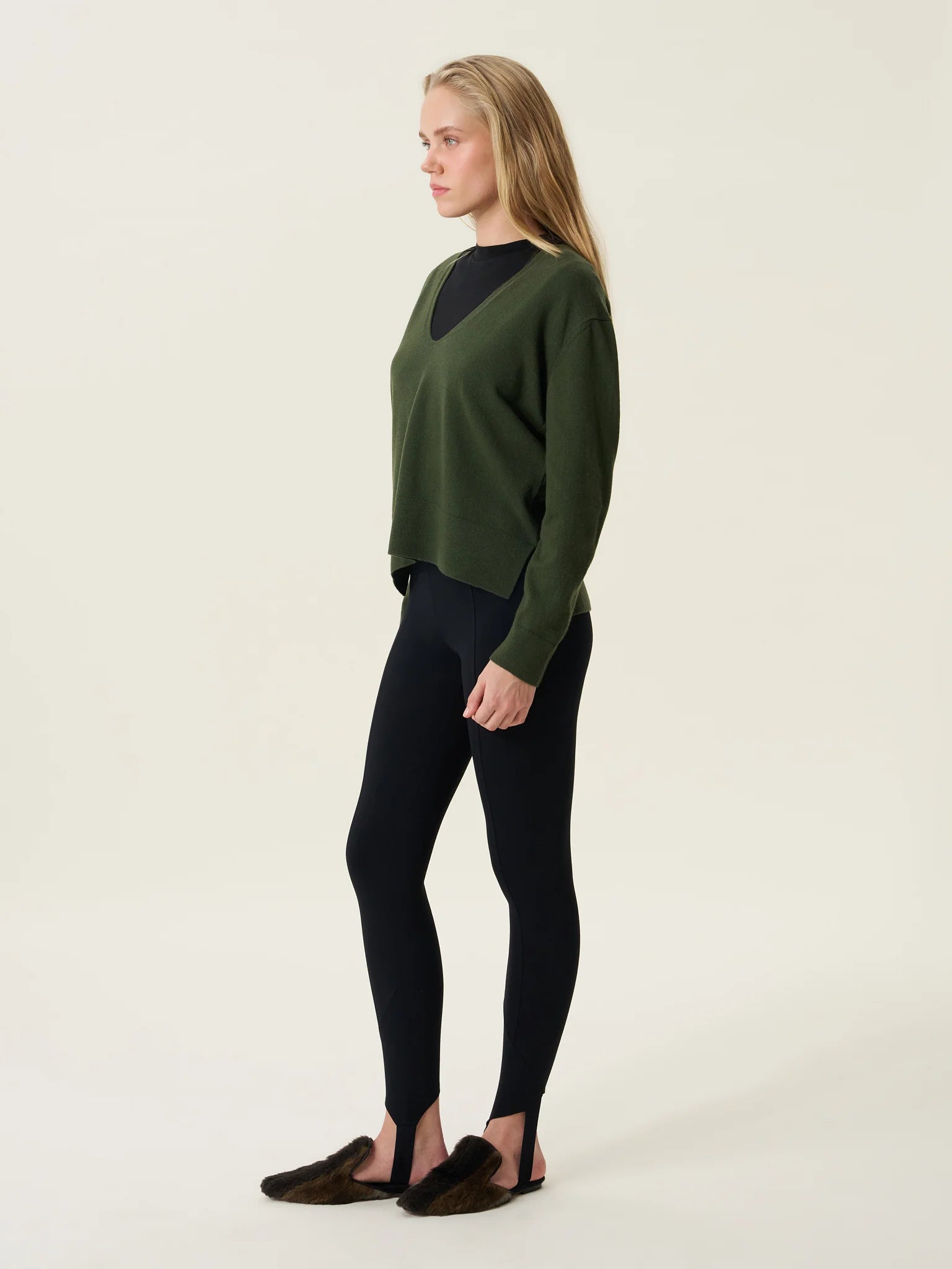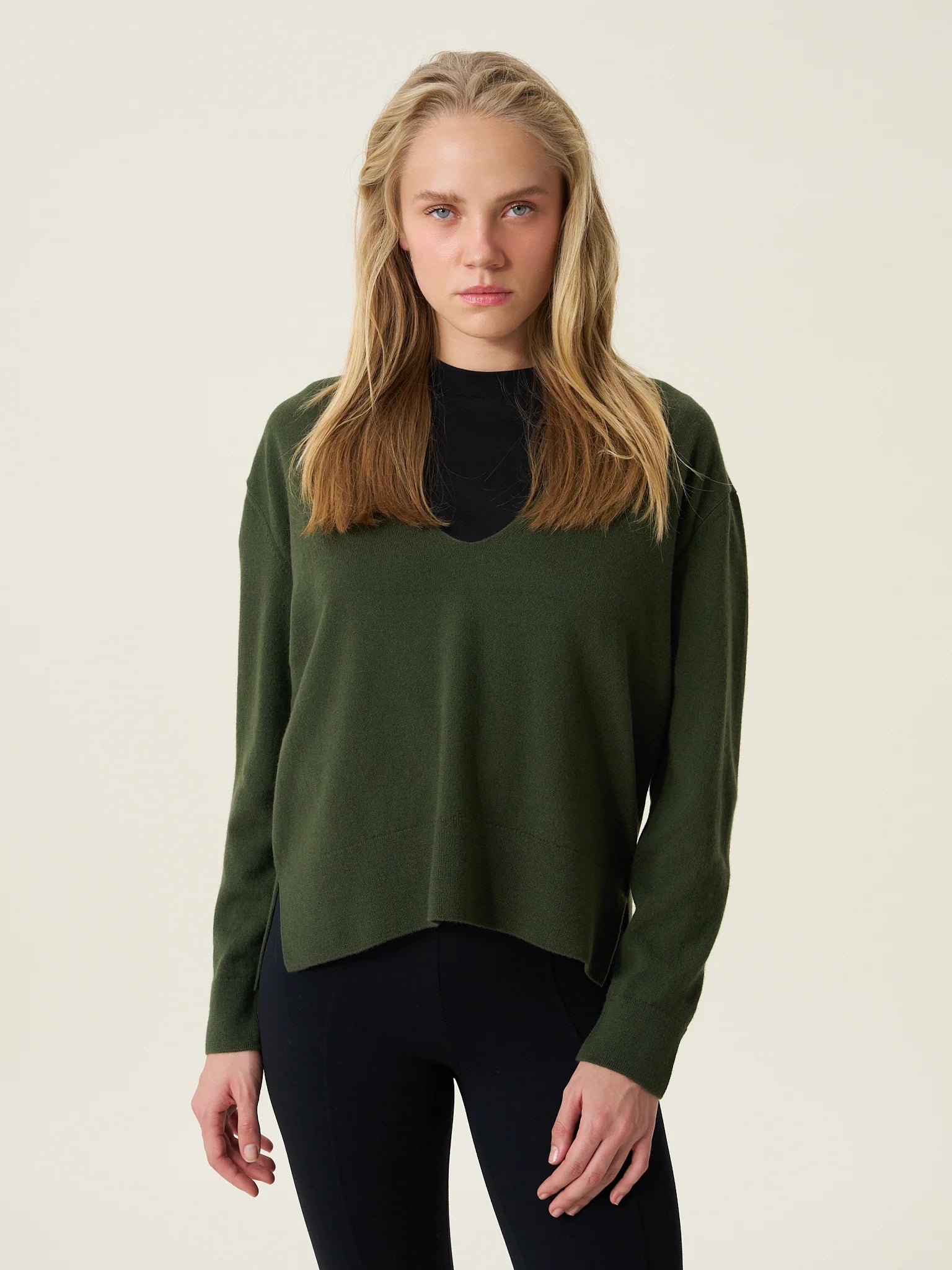 ESSENTIALS 02: Haki Kadın V Yaka Kazak