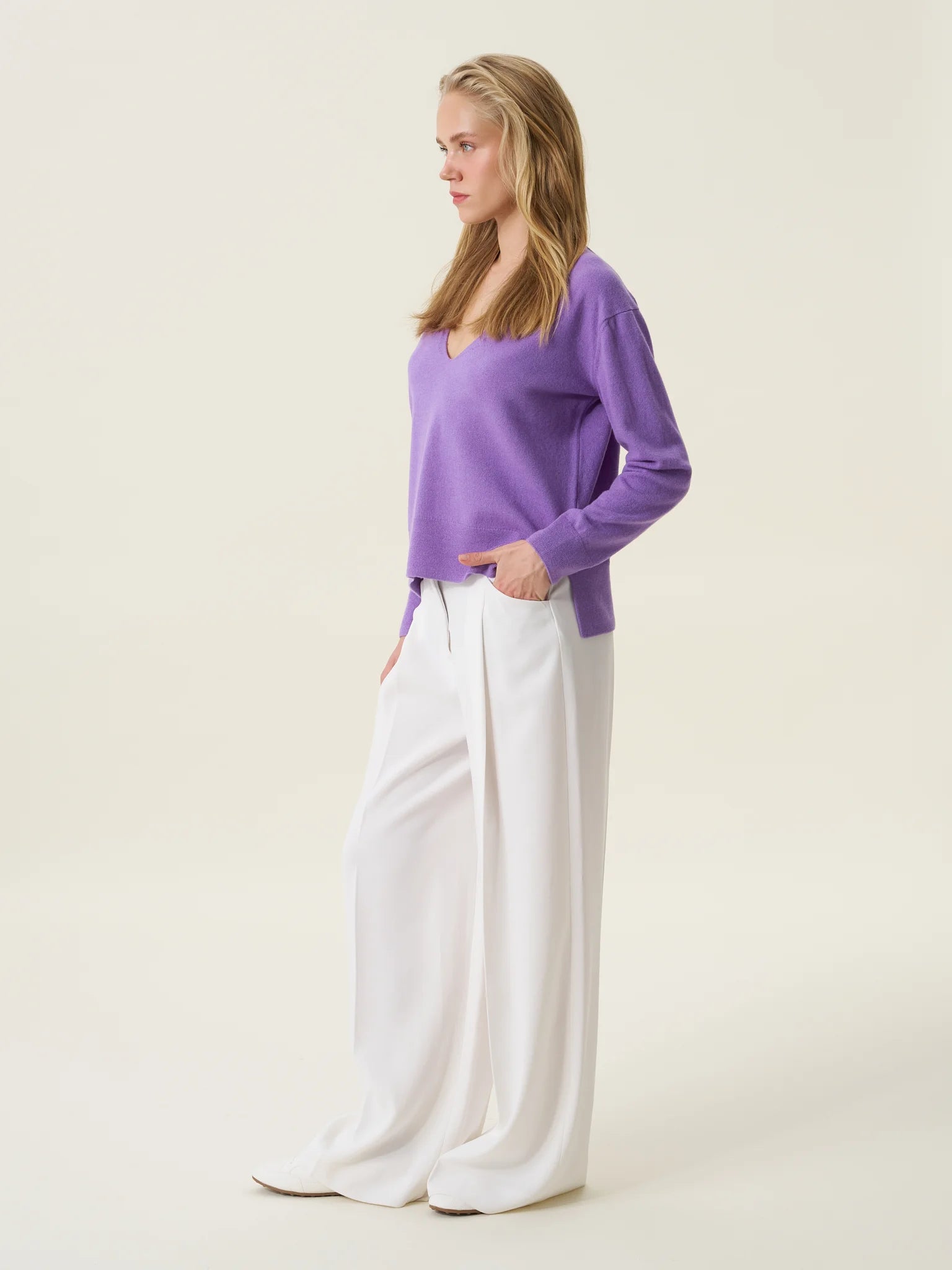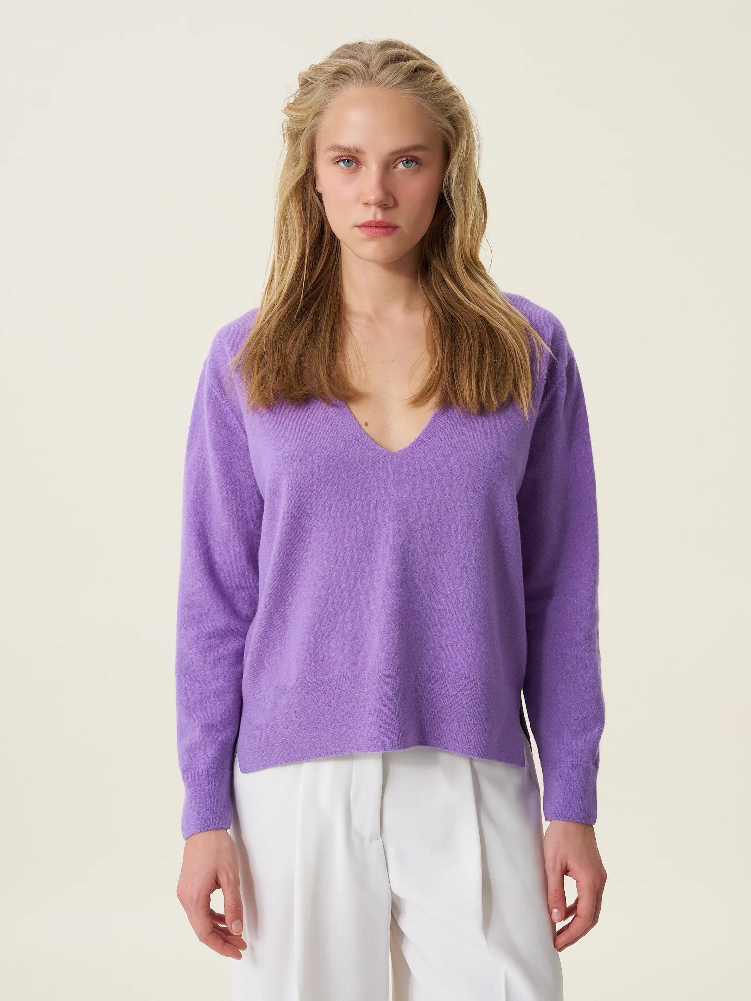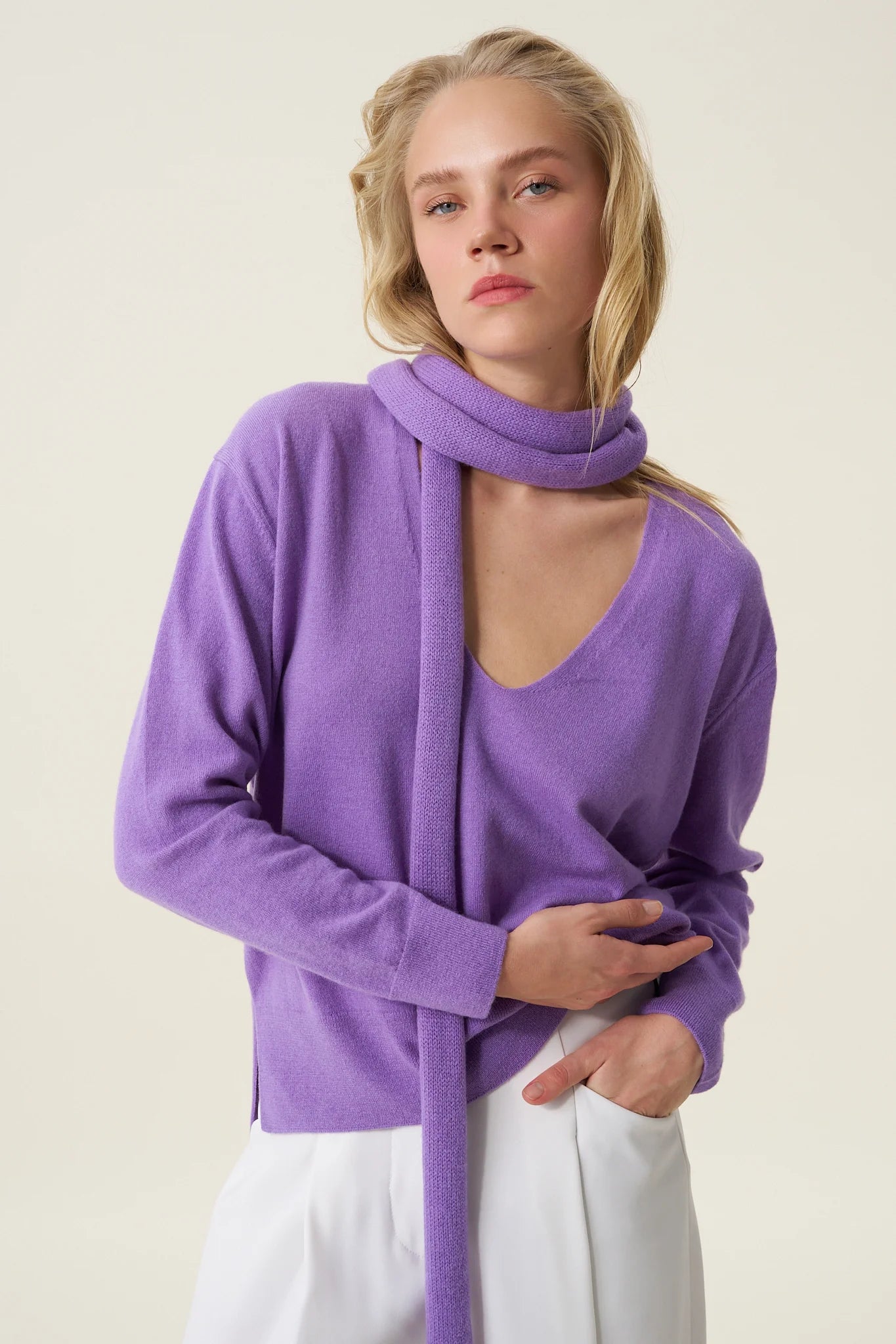 ESSENTIALS 02: Lila Kadın V Yaka Kazak