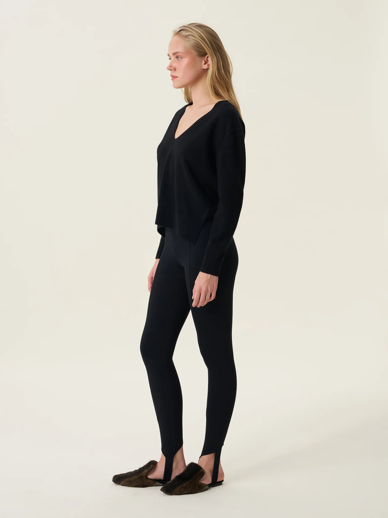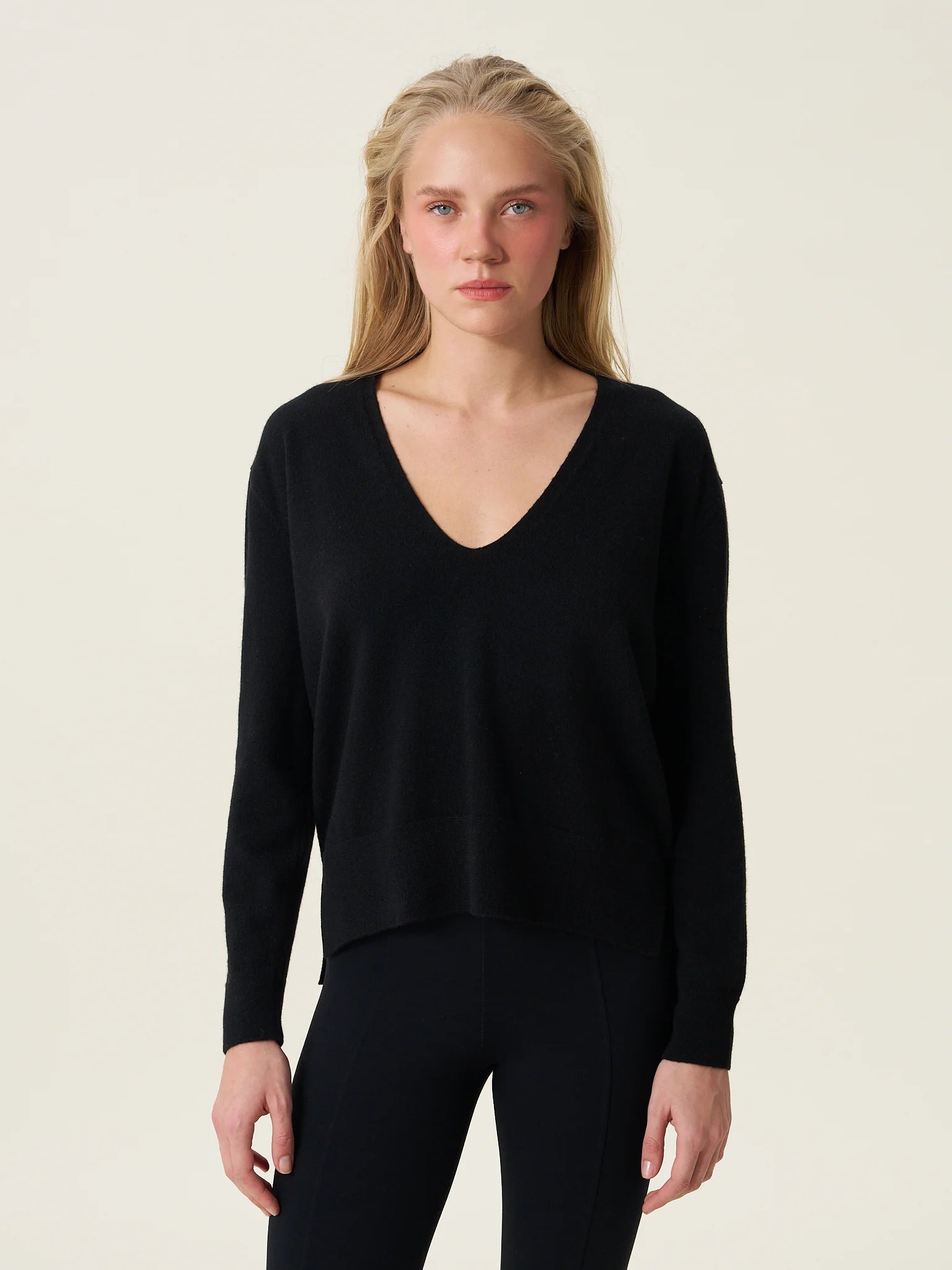 ESSENTIALS 02: Siyah Kadın V Yaka Kazak